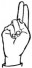 На ћирилици написано МАРКО ГАВРАНОВИЋ састоји се из 15 слова [?]. Исписано ћириличном једноручном азбуком за глувонеме: